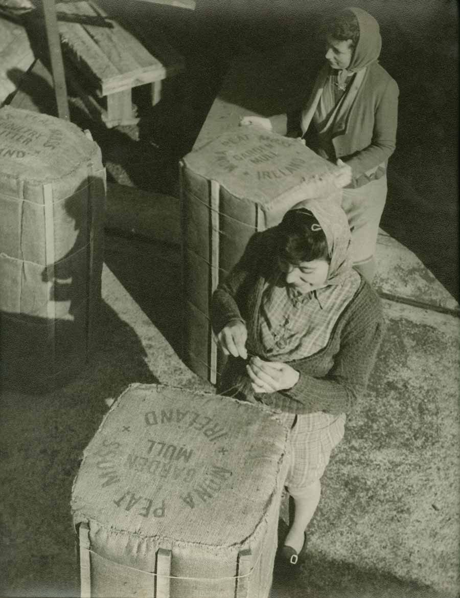 The moss peat bales were sewed at the ends and then exported to the UK and USA.